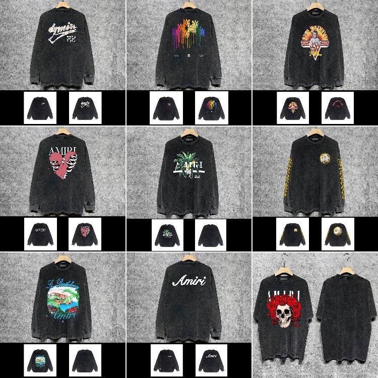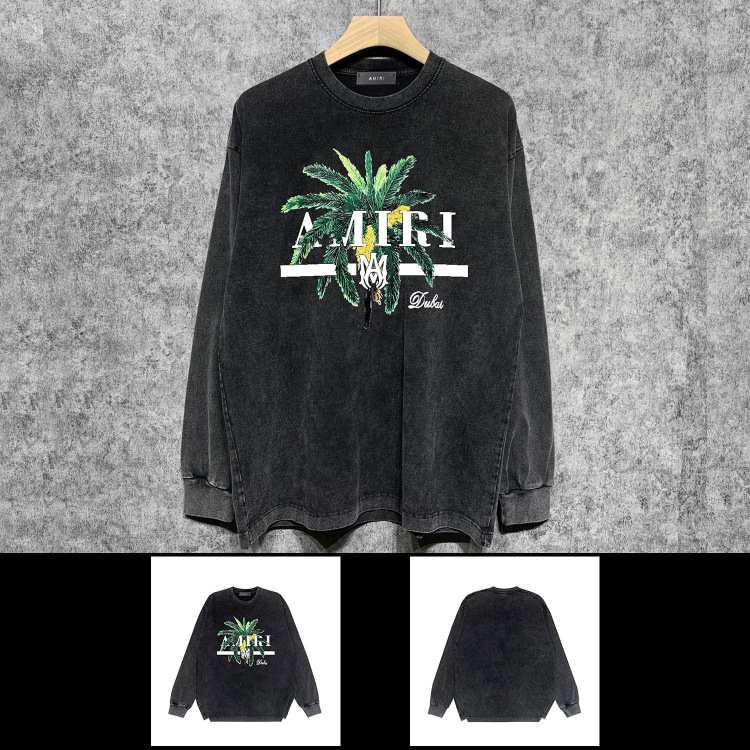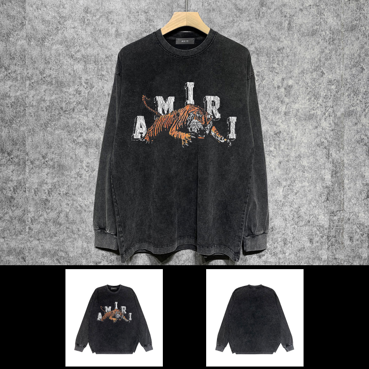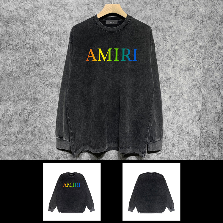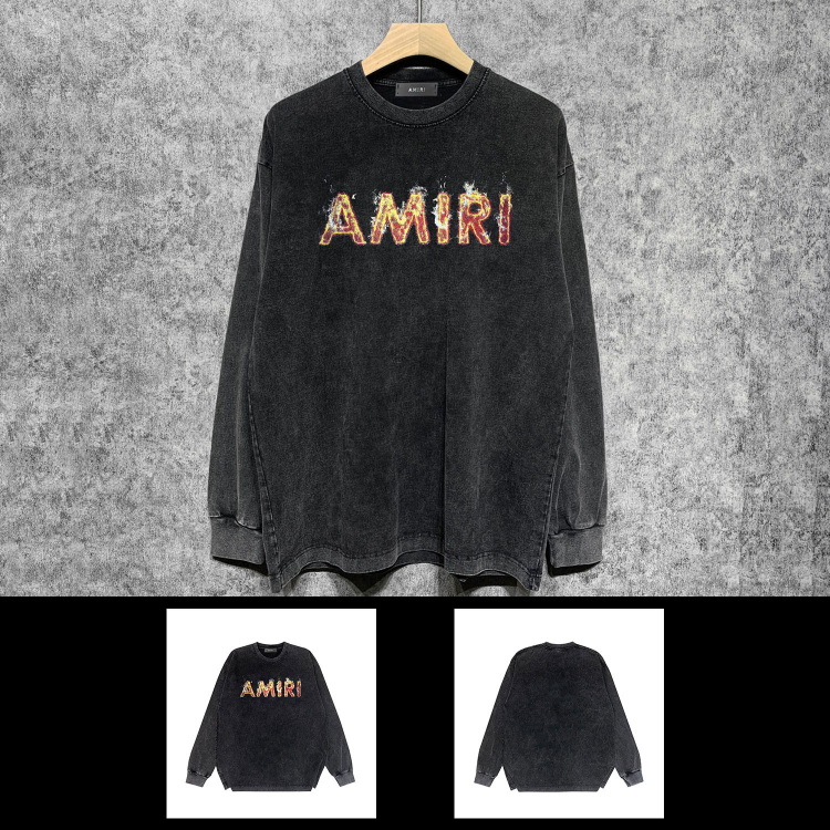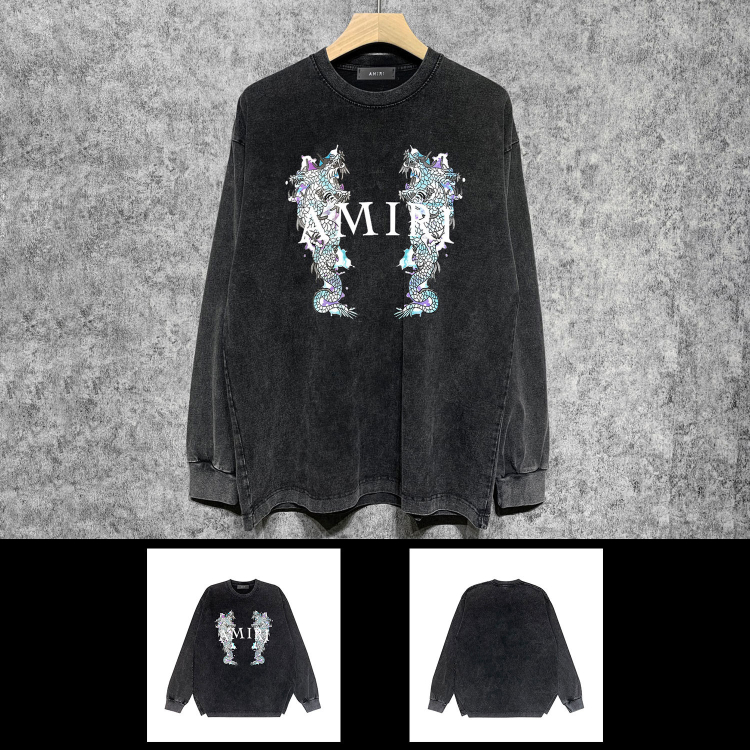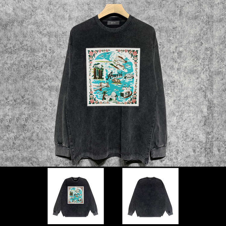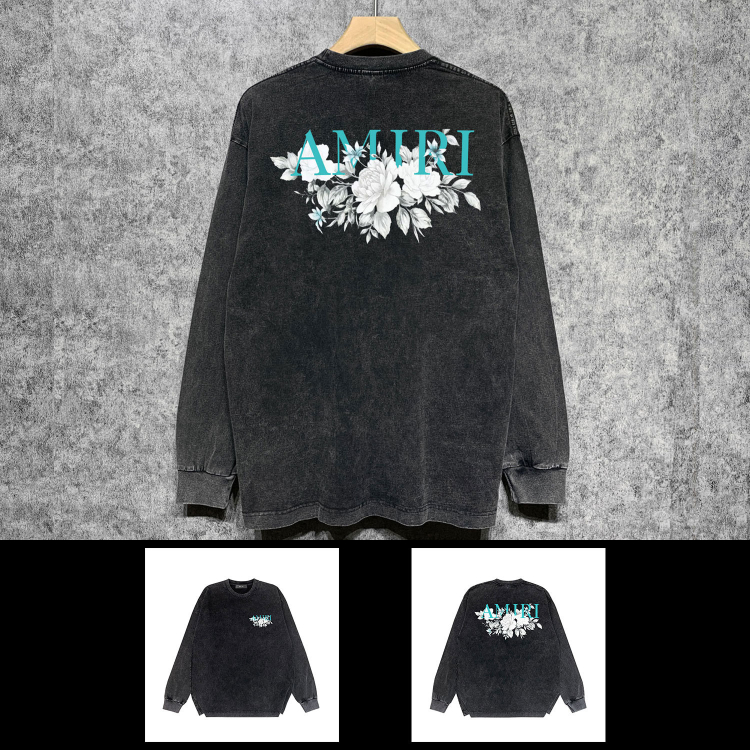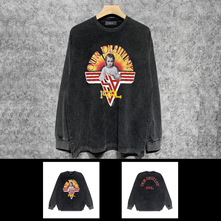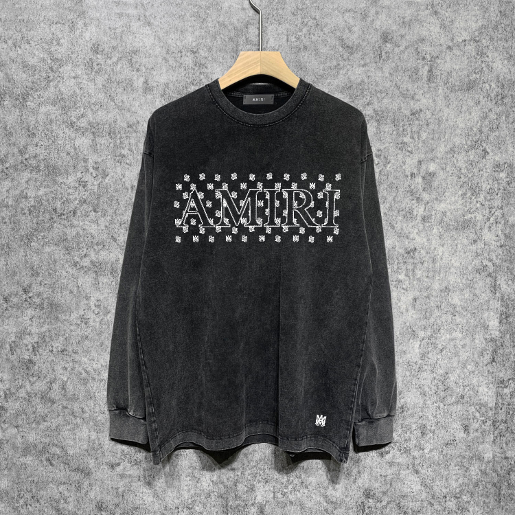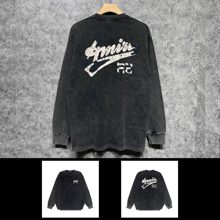 AMIRI popular distressed wash printed long-sleeved T-shirt-5864