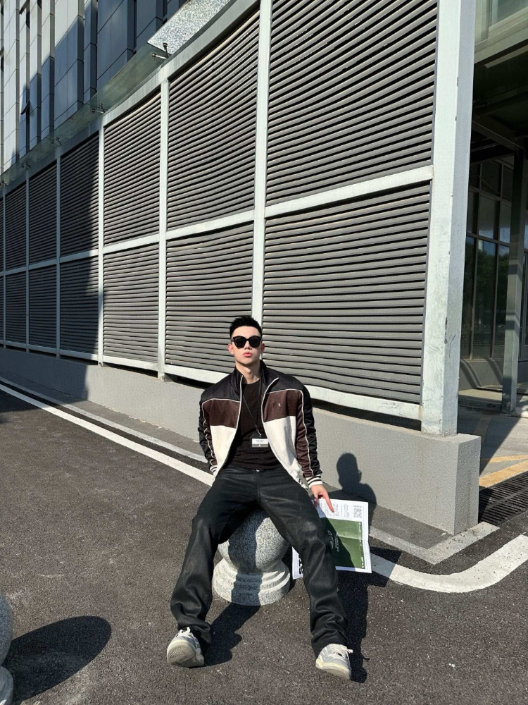 Celine embroidered chocolate-colored patchwork color-block casual jacket-5482