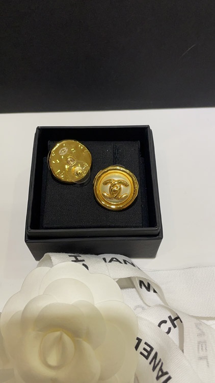 Celine pearl round button gold backpack buckle double C earrings-3899