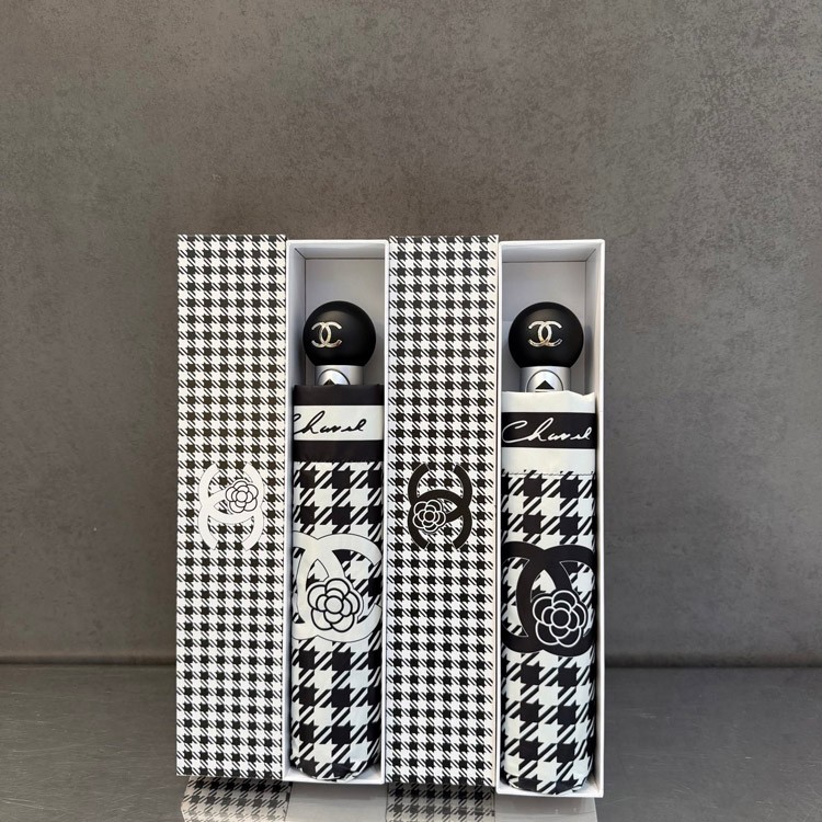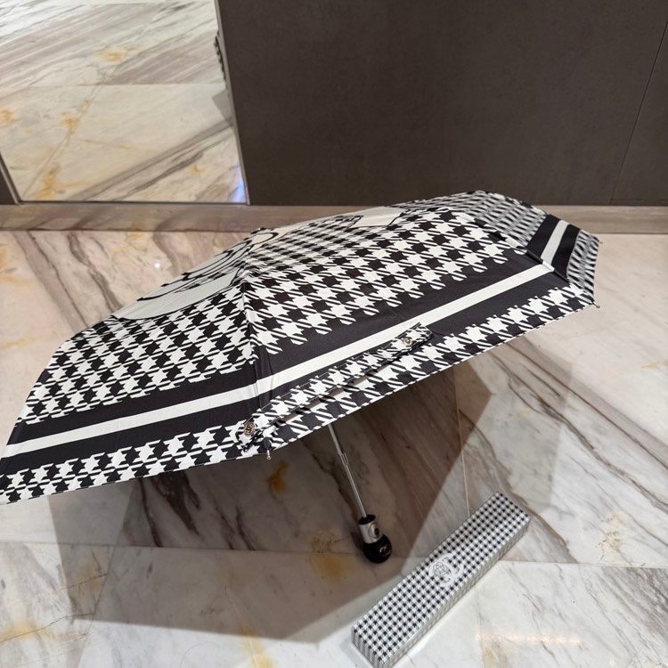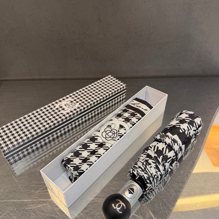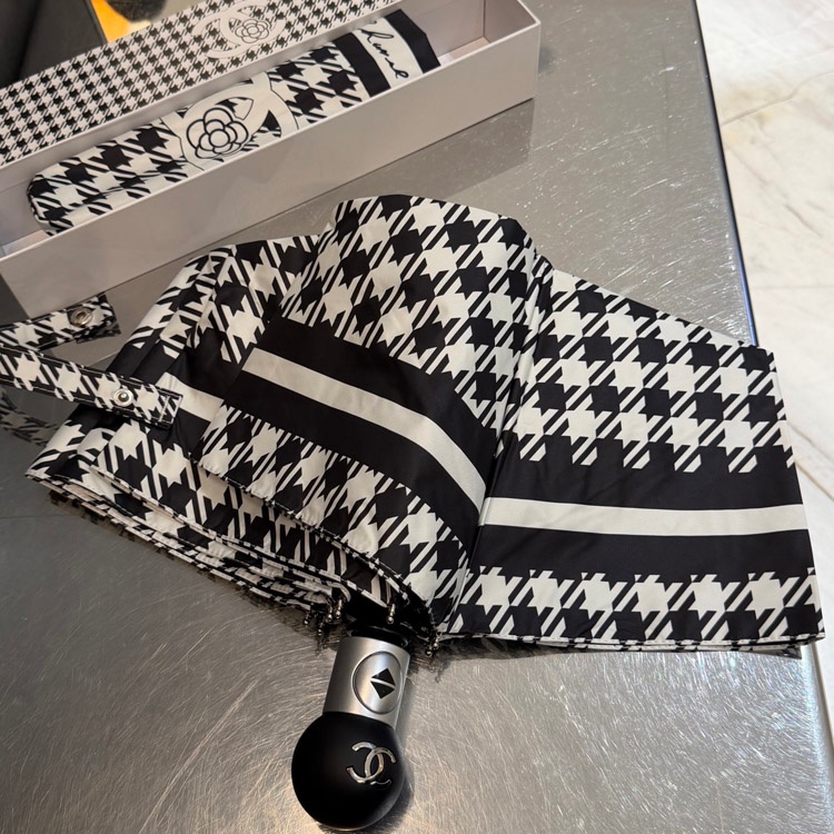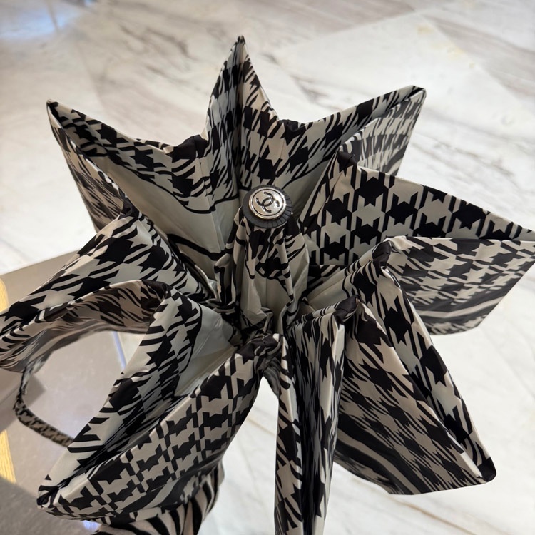 Chanel Houndstooth Camellia Folding Umbrella-6507