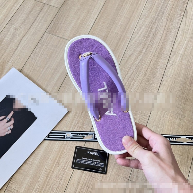 Chanel new terry cloth flat sandals with metal buckle-5710