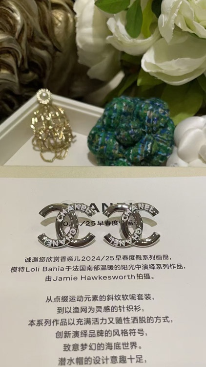 Chanel White Enamel Double C Silver Earrings-3743