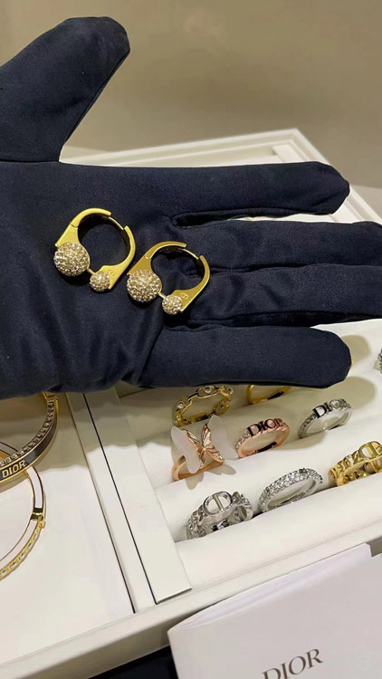Home > Dior French full diamond small golden ball gold earrings-3711