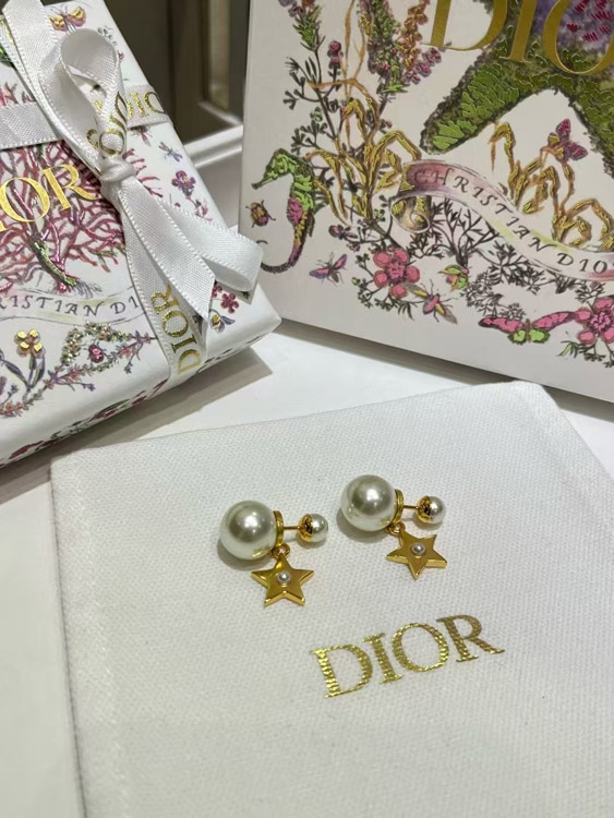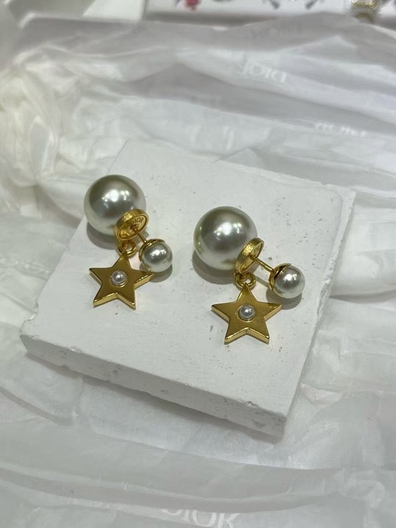 Dior gold star pearl double ball earrings-3707