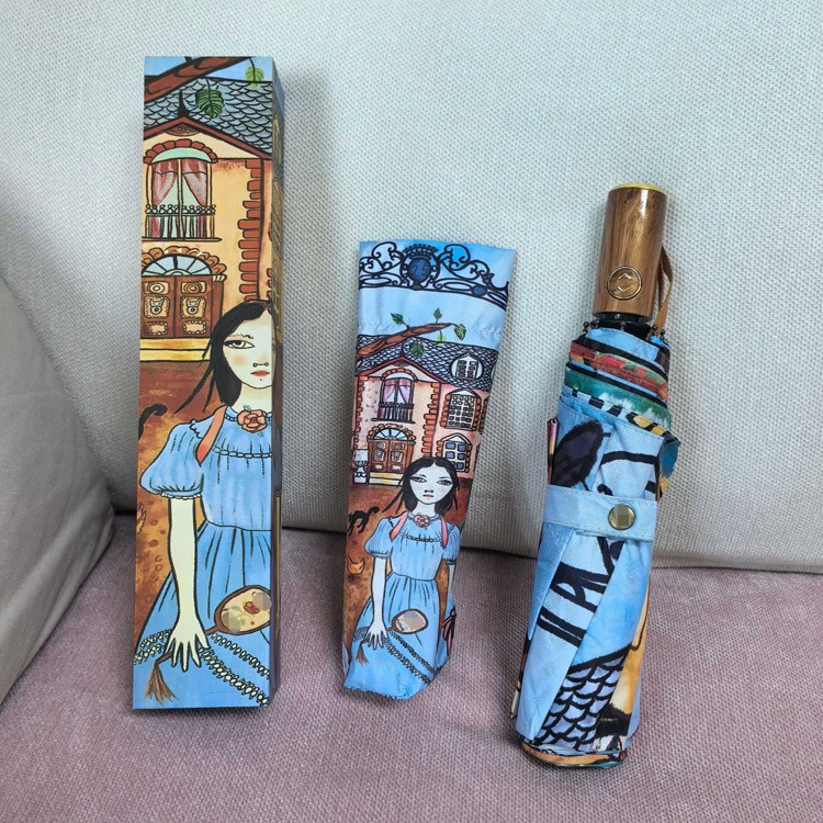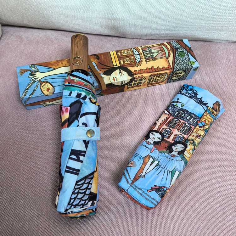 GUCCI Vintage Girl Illustration Folding Umbrella-6528