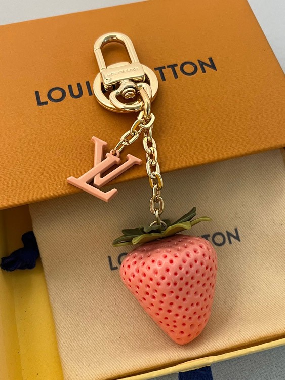 Louis Vuitton LV red pink strawberry bag decoration keychain pendant-3580