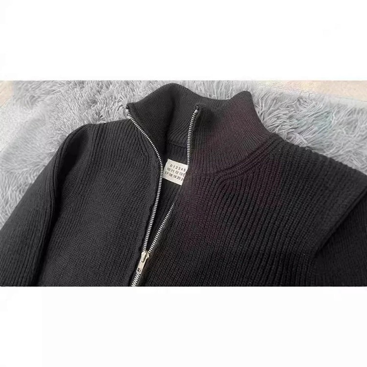 Margiela all wool version high collar zipper cardigan sweater jacket-4471