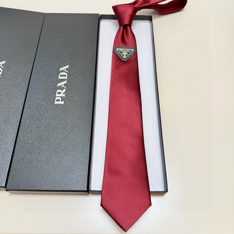 Prada Classic Enamel Triangle Logo Silk Tie-6590