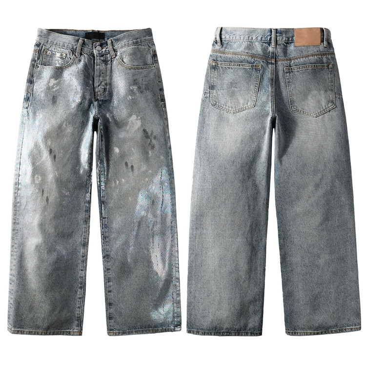 Purple Brand new diamond-studded slim-fit skinny jeans with wide legs-4247