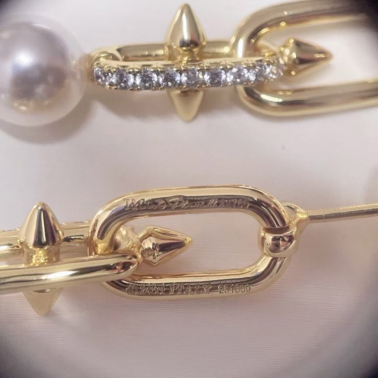 Tiffany diamond pearl rivet earrings-3679