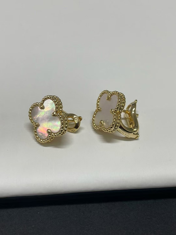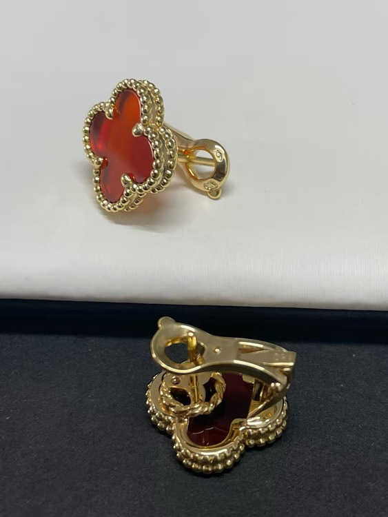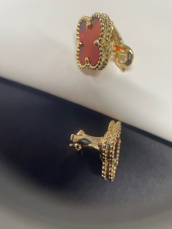 Van Cleef & Arpels Red and White Four-Leaf Clover Earrings-3700