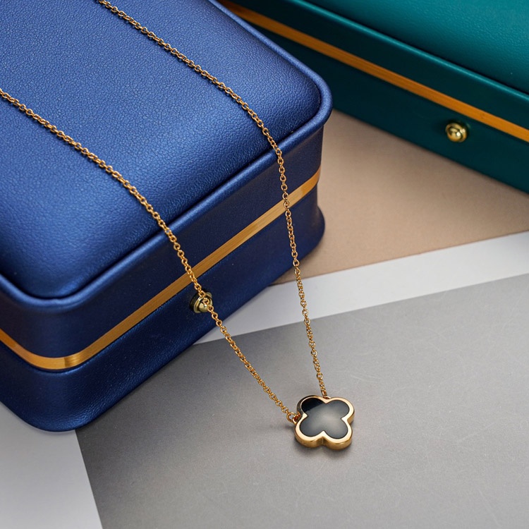 Van Cleef & Arpels White Mother-of-Pearl Black Agate Single and Double-Sided Flower Necklace-3883