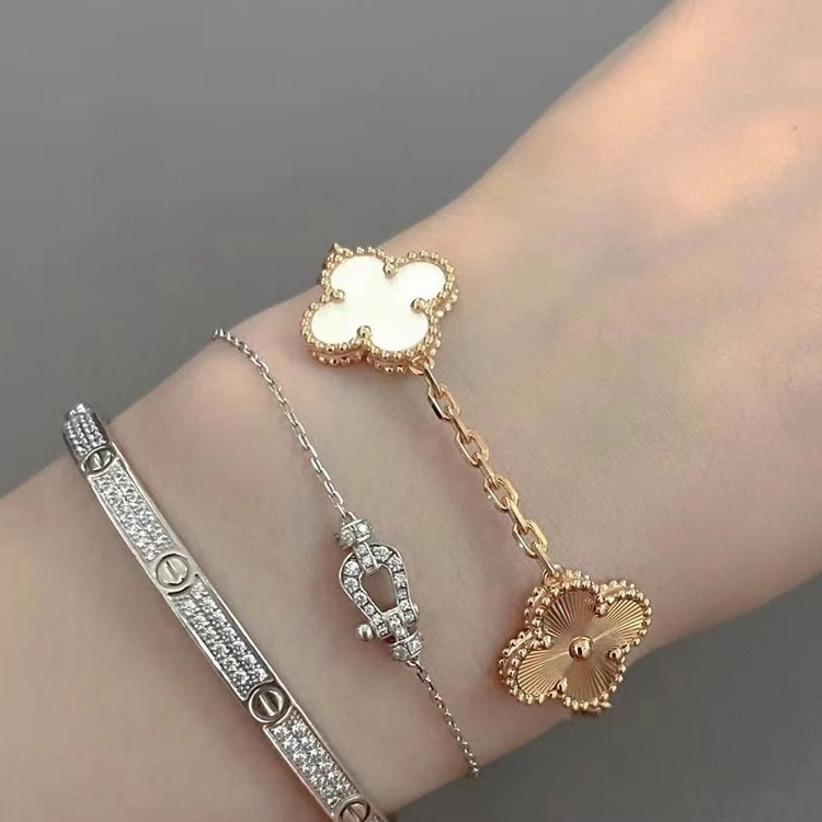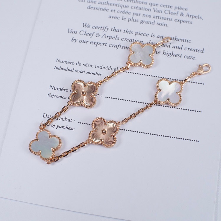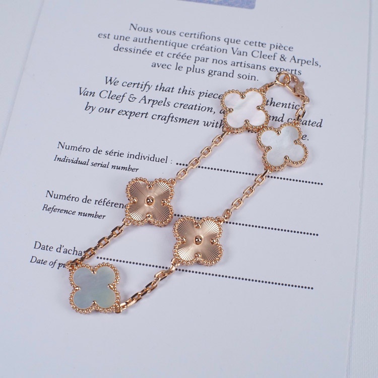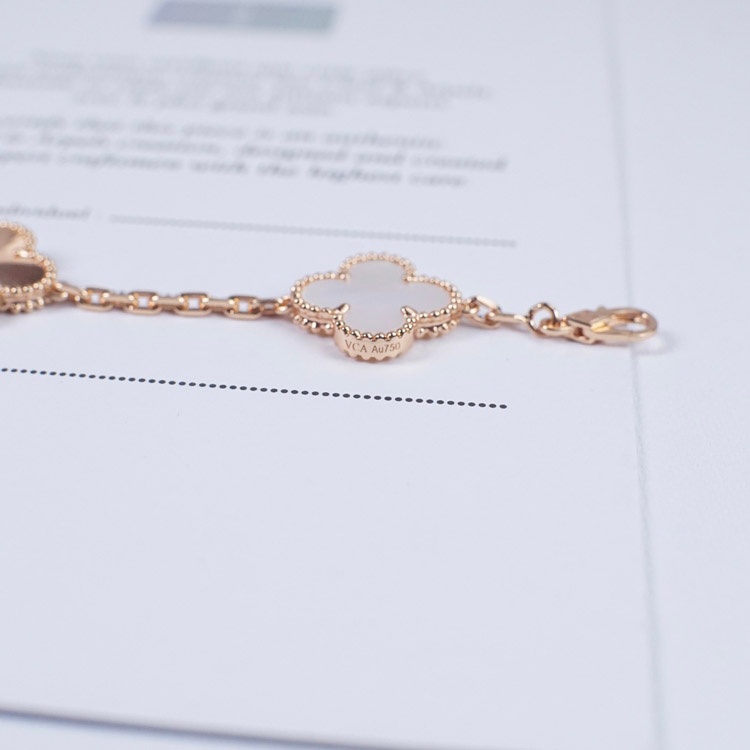 Van Cleef & Arpels White Mother-of-Pearl Laser Flower Bracelet-3689