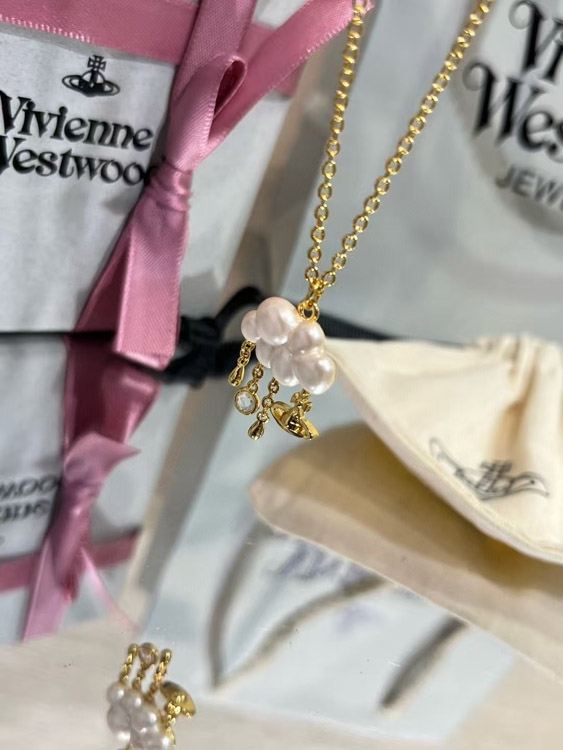 Vivienne Westwood Pearl Cloud Small Saturn Pendant Necklace-3829