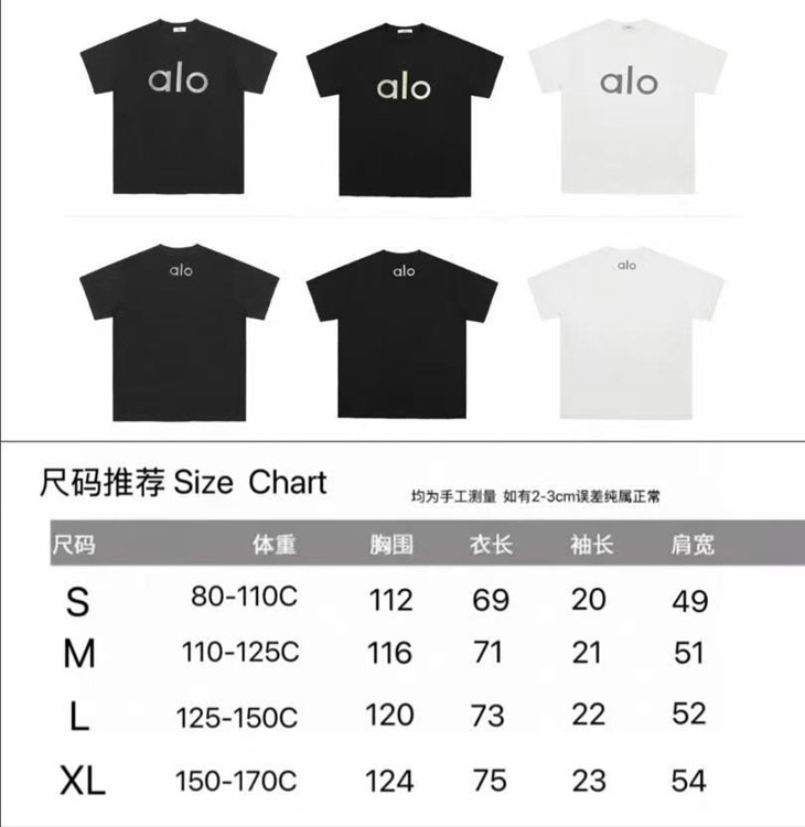ALO Foamed Letter Hot Stamped Silver Short-Sleeved Crew Neck T-Shirt-5096