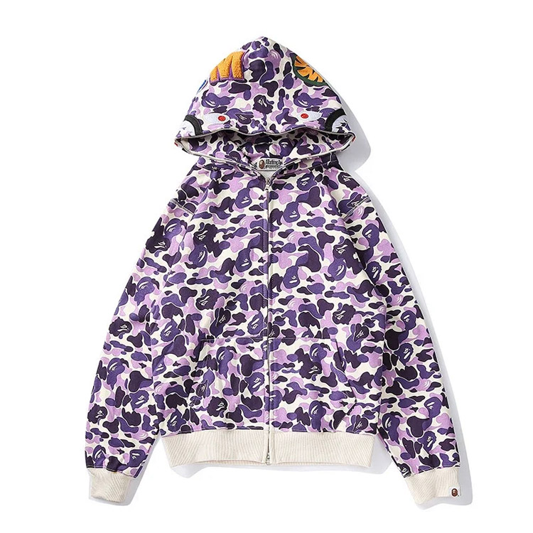 BAPE colorblock fluorescent shark series hooded pullover sweatshirt jacket-4244
