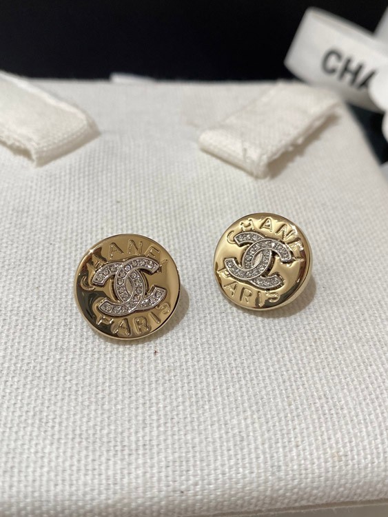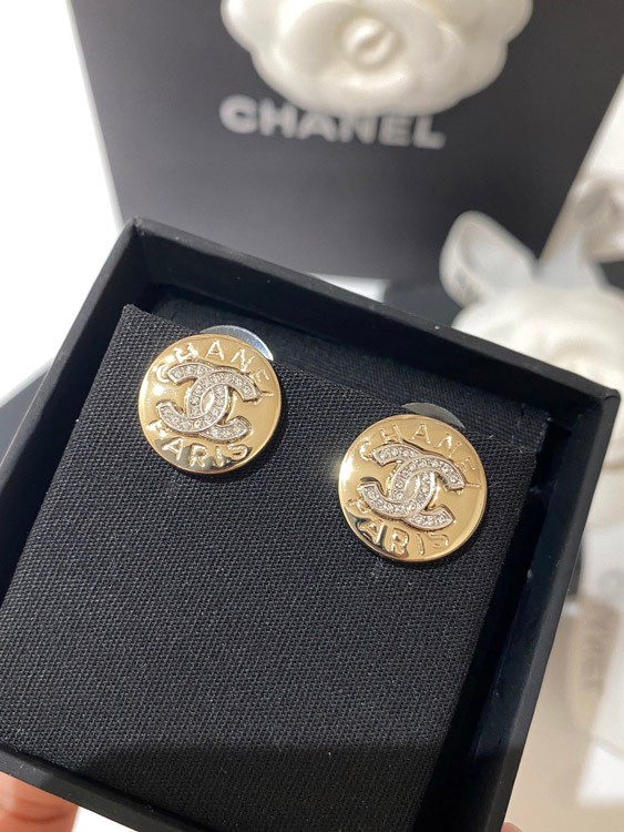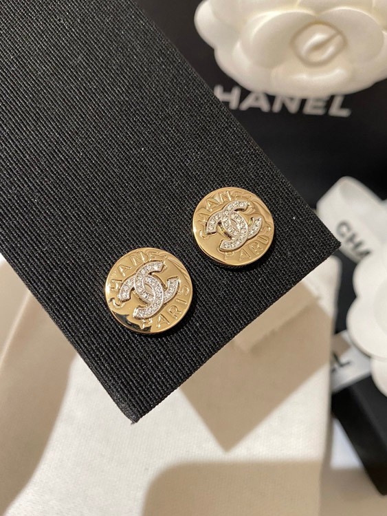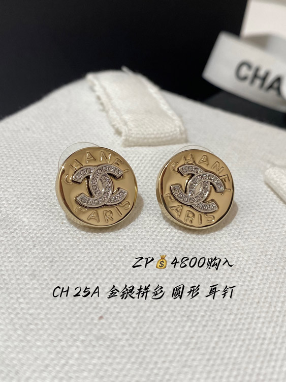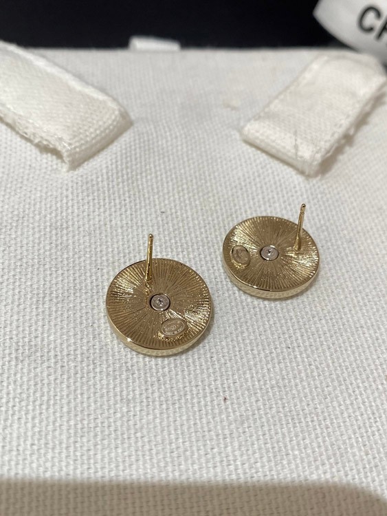 Chanel gold and silver color matching round earrings-3592