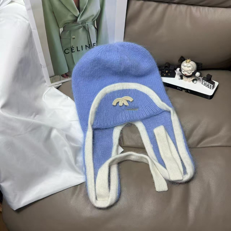 Chanel new rabbit fur warm knitted hat with ear flaps-5975