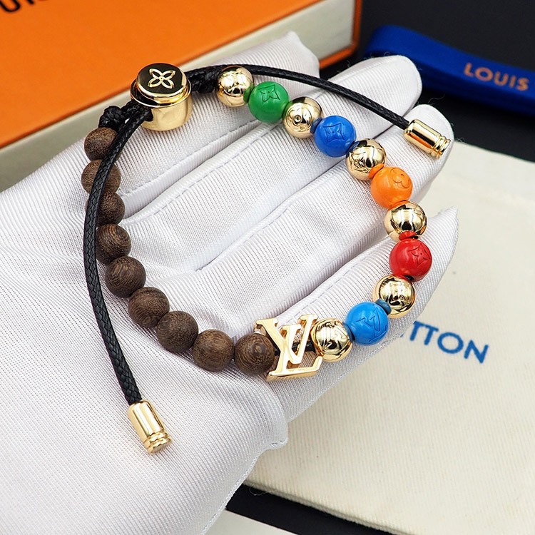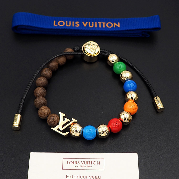 Home > Louis Vuitton LV adjustable cord embellished wooden inscription metal beaded bracelet-3949