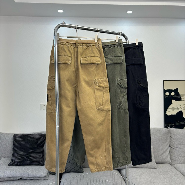 Home > Stone Island Embroidered Loose Straight-Leg Casual Multi-Pocket Cargo Pants-5238