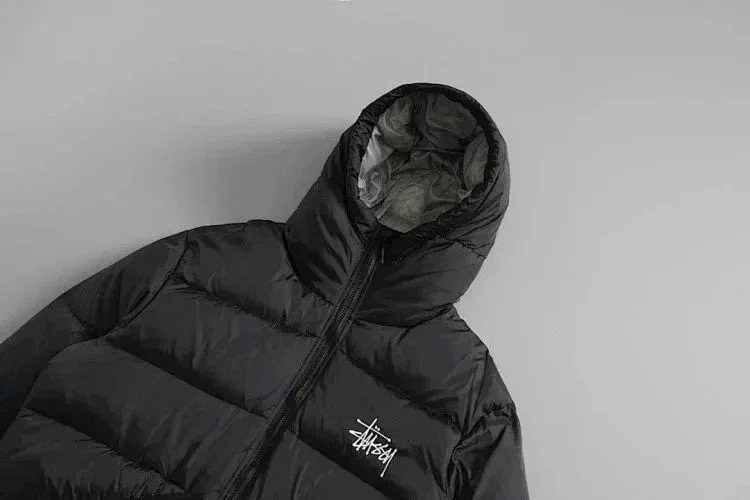Stussy Micro Ripstop Down Parka Solid Color All-match Zipper Hooded Short Down Jacket-4351