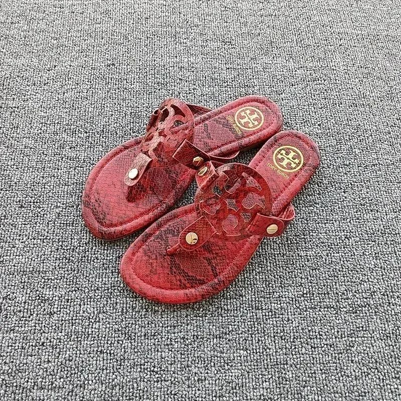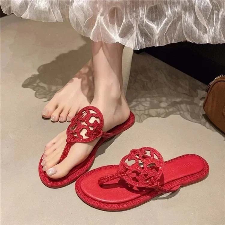 Home > Tory Bury New diamond flat bottom women's slippers ins fashionable beach thong toe rivet rhinestone flip flops-2330